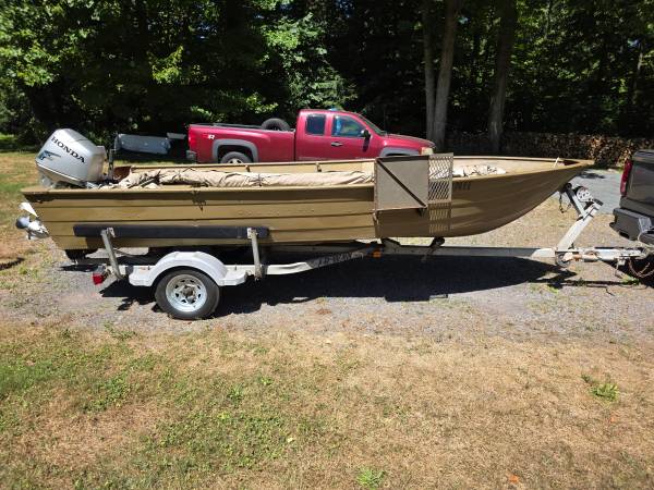 16' Sea Nymph 25HP Honda electric start Karavan galvanized trailer (new tires) Avery Blind Portable 5" Lowrance depth finder Dog ladder Bilge pump Cover If this add is up, it's still for sale. Send...