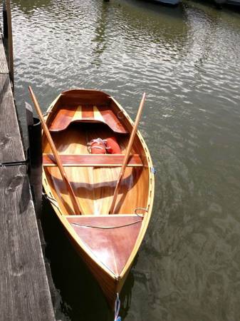 PRICE DROP! MOVING CROSS COUNTRY. One of a kind locally made tender. All wood with hand carved elements, finished with West Systems epoxy. An eye catcher on the water. Comes with matching oars and...