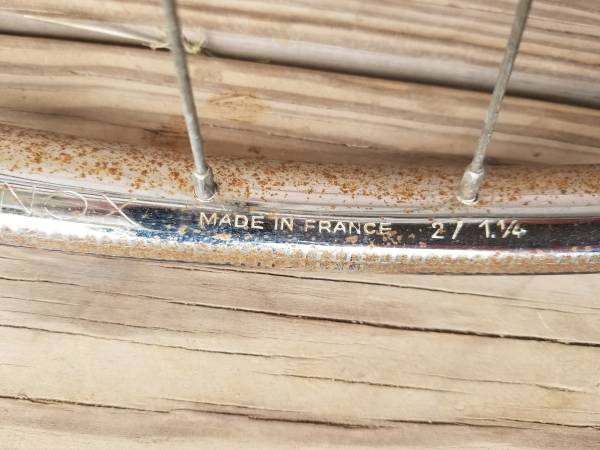 Excellent Vintage 27-inch Road Bike Rim/wheel in very good original condition. Very straight. Minimal rust from storage, will easily clean off. Made in France "SAMIR SAMINOX" Asking $35. Call if...