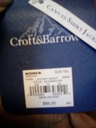 New Croft & Barrow canvas shirt jacket, fleece lined. men's size XXL. Dry wheat colored. Still has the original price tag from Kohl's. $15/ best offer