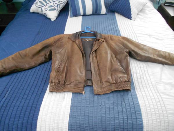 Vintage Men's Large Leather Jacket. Good condition. Has zip out liner. Couple of marks here and there but no holes or rips. Could use some conditioning. Asking $70 585 five 9 for 8 one 9 for