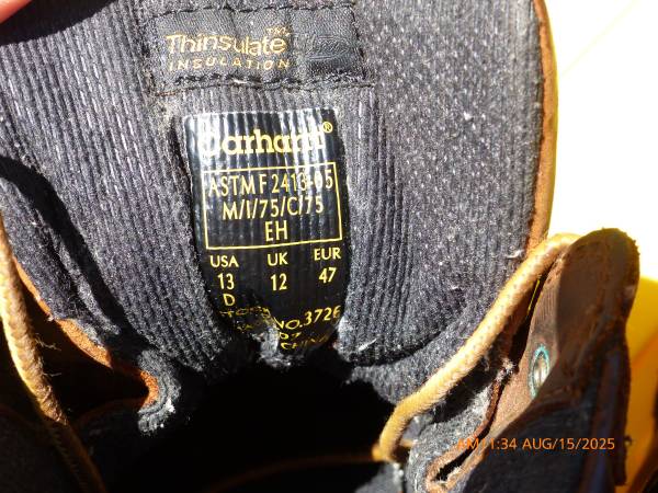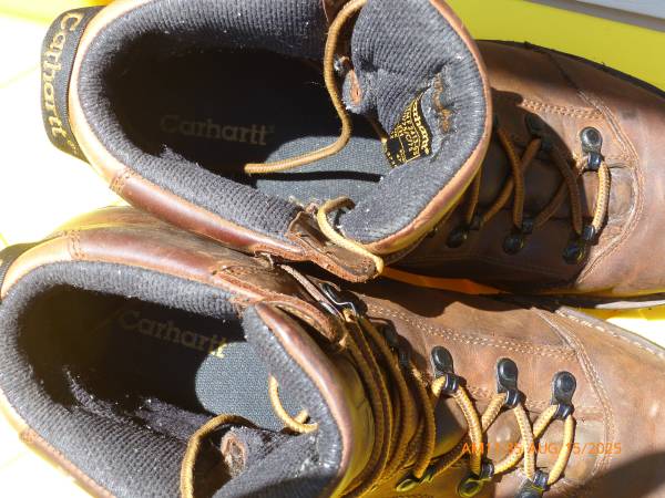 Up for sale are a beautiful pair of Carhartt leather steel toe boots. Size 12-13 in Excellent condition. Looks like maybe worn 1 or 2 times, that's it! Please observe the pics for a detailed look....