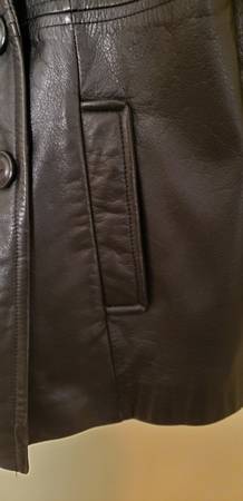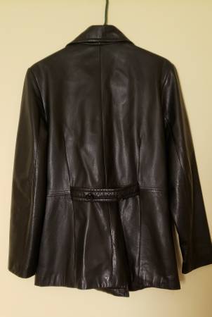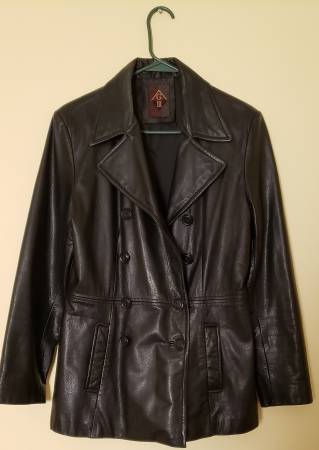 G III Black Leather Women's Hip Length Jacket. Size 6 to 8. This jacket is double breasted, fully lined, buttons up, and has pockets. Excellent condition. If interested, come try it on. This would also make a perfect gift. Pick up in Greece **See my other listings**