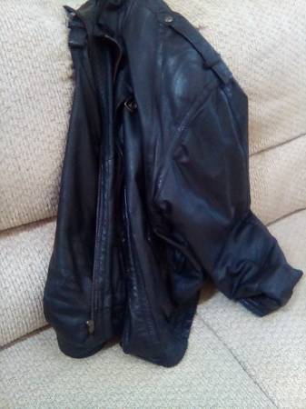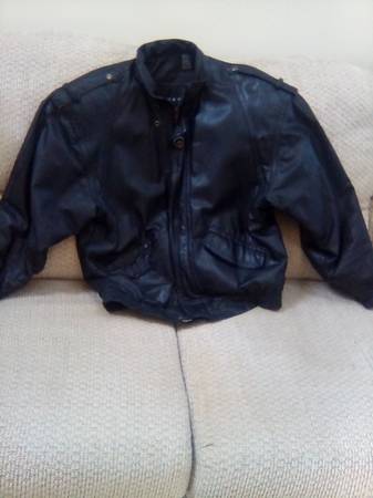 Men's Large Leather. Purchased new by myself about 25+ years ago. Hasn't been worn in the past 15 or so years. Good lining with one inside pocket. Very minor wear. Has the broken in look, not a dress leather. Small amount of padding in the shoulders. All snaps and zipper good.