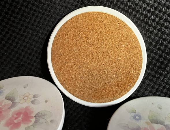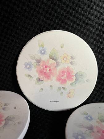 7 Pfaltzgraff Tea Rose COASTERS, Natural Stone, Cork Back, 4" Diameter