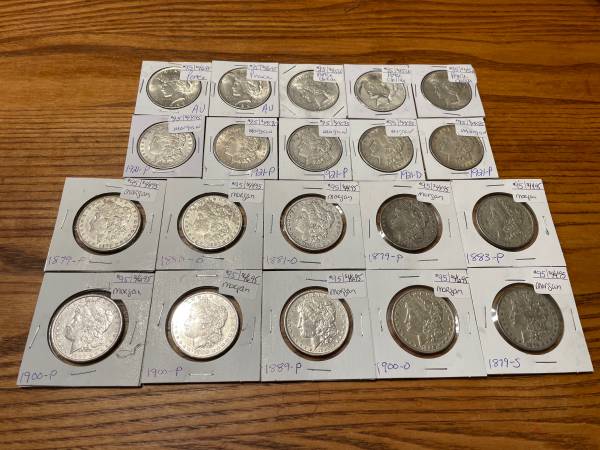 90% Silver Dimes Quarters Halves Peace and Morgan Silver Dollars -...