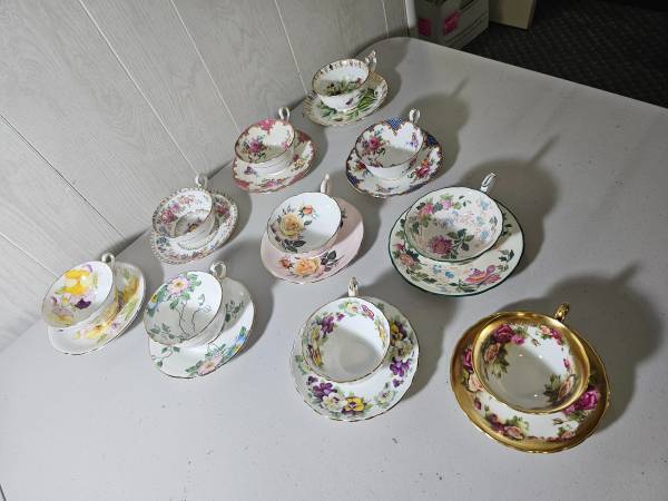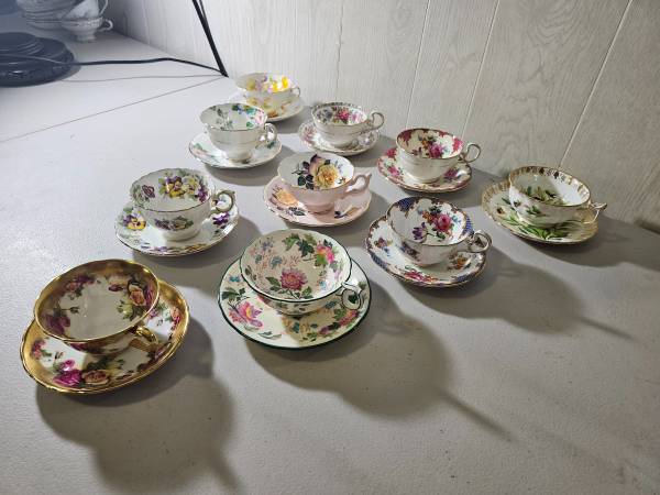 Lot of Teacups and Saucers. 10 sets. Will not separate. Must buy all. Call . Land Line / No Texting (five, eight, five, three, nine, two, five, eight, six, five).