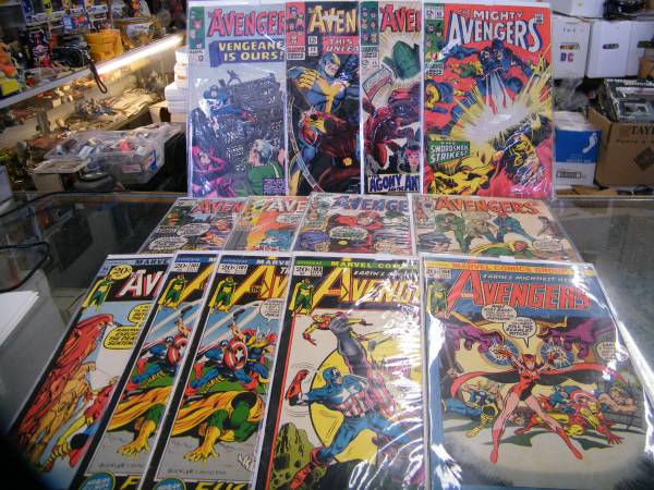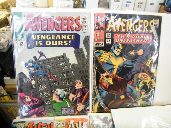 1960'S MARVEL COMIC BOOKS " The AVENGERS" #20-VG/F-$90.00 #29-G/VG-$30.00 #46-VG- $25.00 #65- VG+ $30.00 #77- aFN-$45.00 #78- VG-$35.00(1st lethal legion #79- VG/FN-$40.00 #81- FN- $45.00 #94-...