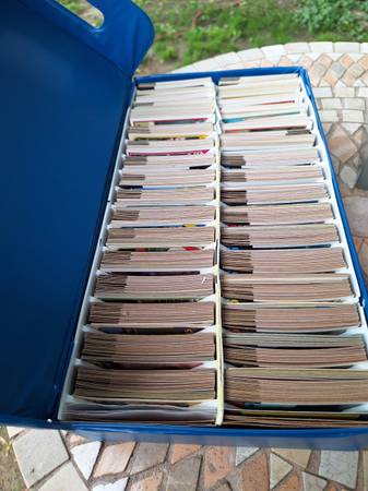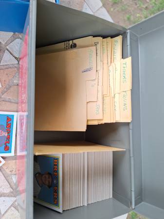 A ton of baseball cards most are from 1986 or older.. I don't know what they're worth I'm not going to go through every single card good luck.