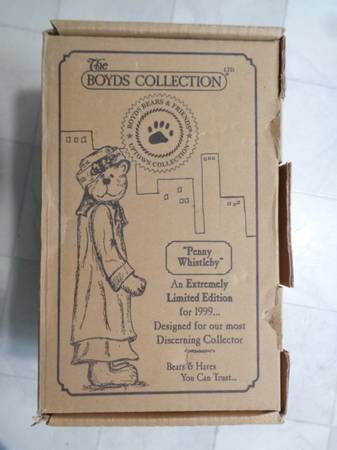 Bear is approx 8" tall. From 1999. Bear and trunk are like new. With original box. Sorry no shipping. Pick up in Irondequoit.