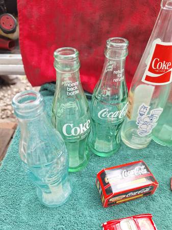 Some vintage 1980s bottles some older vintage bottles some Coca-Cola cars and trucks. All in decent shape.