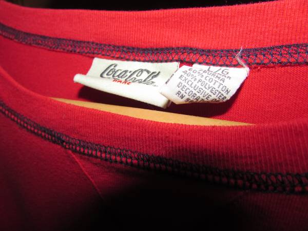 Women's Coca-Cola Ware cropped long sleeve shirt in a size large. Very good shape. No issues. Looks to be vintage. I'm in West Irondequoit. Call or text or use Craigslist mail.