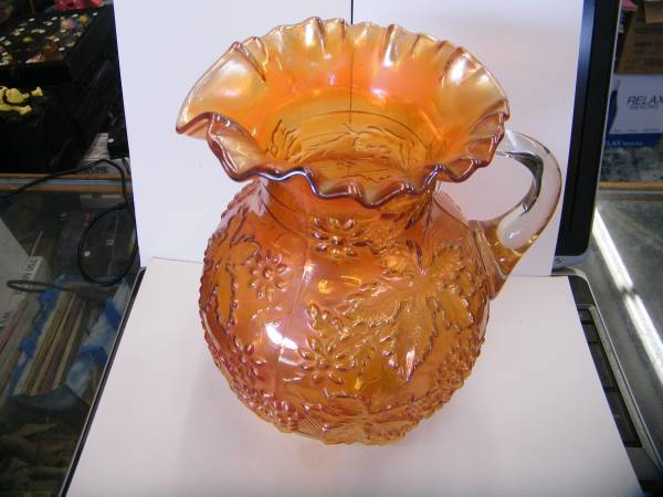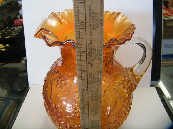VINTAGE FENTON CARNIVAL GLASS PITCHER 9 1/2'' X 7'' CLEAR GLASS HANDLE PERFECT CONDITION SALE $45.00