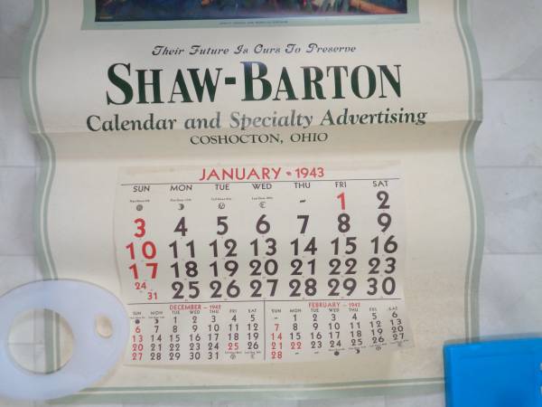 Large 1943 Calendar - collectibles - by owner - sale - craigslist