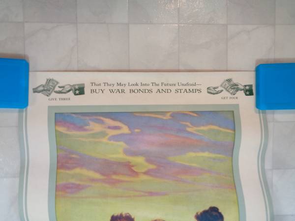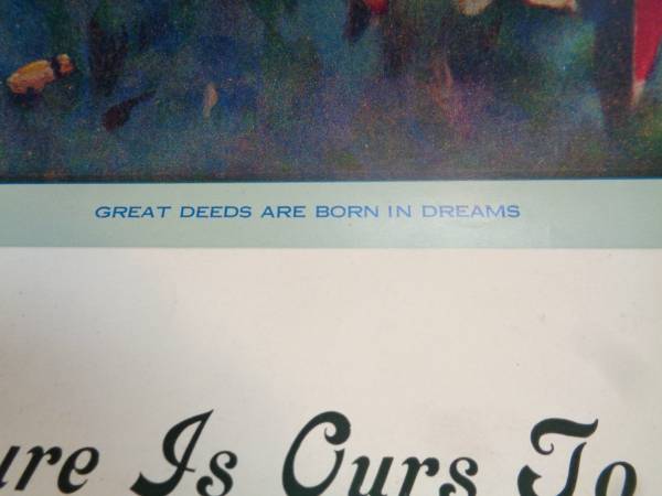 No shipping. Pick up in Irondequoit near Rochester General Hospital. 45" tall. 22" wide. Salesman sample calendar. Caption below artwork reads "great deeds are born in dreams". Needs to be flattened.