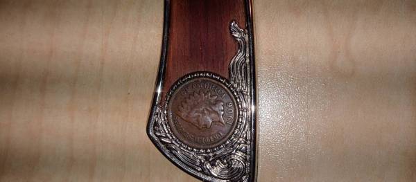 Knife has a 1906 Indian Head Penny gleams against the embellished wood grain handle of our Collector's Edition Pocket Knife. A very limited edition and an exclusive design of American Coin Treasures, this extraordinary Collector's Knife features a 2 7/8 inch stainless steel blade