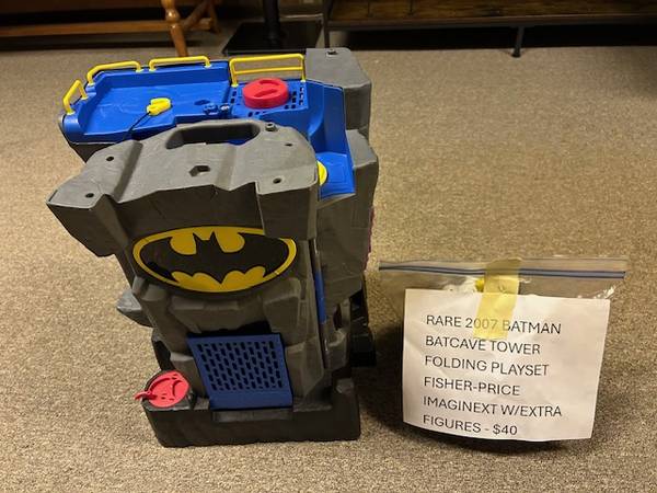 RARE 2007 BATMAN BATCAVE TOWER FOLDING PLAYSET FISHER-PRICE IMAFINEXT W/EXTRA FIGURES!! COMES FROM A SMOKE AND PET FREE HOME. CALL OR TEXT 585-SEVEN4EIGHT-SEVEN7SEVENZERO.