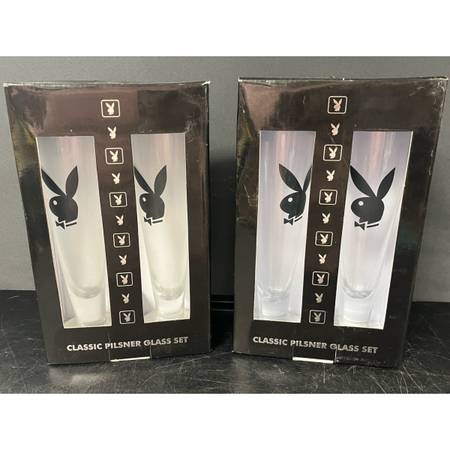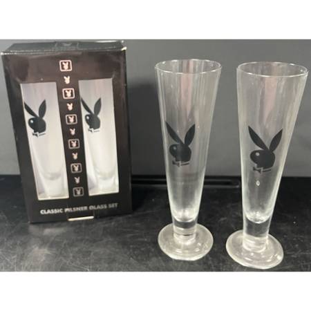 (2) Set of 2 Playboy Tall Classic Pilsner Beer Glasses. $15 ea set of 2
