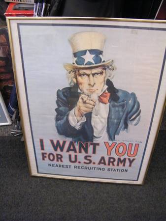 1975 '' I WANT YOU FOR THE U.S. ARMY '' POSTER FRAMED 22'' X 28'' (glass) $49.00