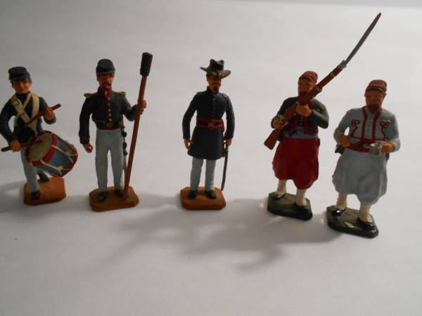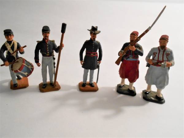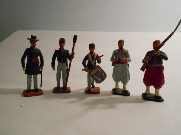 Finely detailed lead soldiers each about 57mm high, from the Revolutionary and Civil Wars. *All but one are in excellent condition. $100 all or make offer. *The rifle of that soldier came loose but is saved.