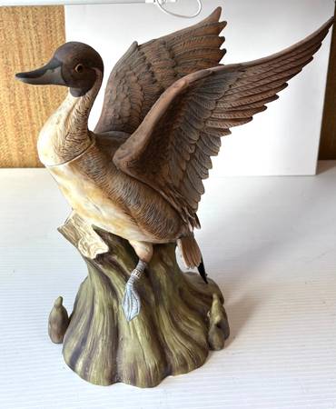 A 15"tall x 12"w sculpture of a Pintail Duck with a tag on its leg that says 1978 (EMPTY)