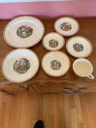10 1/8" Dinner Plate, 7 3/4" Coupe Soup Bowl, 5 3/4" Cereal Bowl, 5" Fruit Bowl, 6 3/4" Bread/Butter plate, Cup/ Saucer.