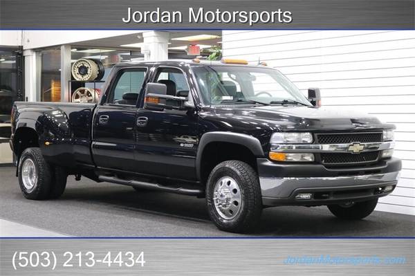 UP FOR GRABS IS A SUPER HARD TO FIND IN THIS SHAPE AND CONDITION AND SUPER LOW MILES LOCAL FRESH TRADE IN CLEAN TITLE AND CARFAX CERTIFIED 1-OREGON OWNER SINCE NEW 2001 CHEVROLET SILVERADO 3500 CREW CAB LONG BED LT 4X4 DUALLY WITH ONLY 57K MILES AND BIG BLOCK 8.1L, LOADED WITH ALL AVAILABLE OPTIONS FROM THE FACTORY FOR THE YEAR INCLUDING FULL LEATHER INTERIOR, HEATED SEATS, EXTENDABLE TOWING MIRRORS, TRAILER BRAKES, REAR DEFROST, RUNNING BOARDS, FENDER FLARES, FOG LIGHTS, ALCOA WHEELS, TINTED WINDOWS, SPRAY IN BED LINER, BOSE SOUND SYSTEM AND MUCH MORE. NO SIGNS OR RECORDS OF ANY ACCIDENTS OR DAMAGES EVER, NO MAJOR DENTS OR SCRATCHES AT ALL IF ANY, LIKE NEW INTERIOR FREE OF ANY RIPS OR TEARS OR ANY BROKEN PLASTICS OR STAINS. THE UNDER CARRIAGE OF THIS SILVERADO IS IN NEW CONDITION AND HAS NEVER BEEN DRIVEN IN MUD OR SNOW AT ALL, IT HAS ZERO RUST OR CORROSION, THIS TRUCK IS 100% STOCK AND HAS NEVER BEEN MODIFIED OR TUNED AT ALLL. THIS 8.1L VORTEC SILVERADO HAS ALWAYS BEEN GARAGED, ALWAYS SERVICED AT SAME DEALER WHO SOLD IT NEW, COMES WITH ALL ORIGINAL BOOKS AND MANUALS AND 2 SETS OF KEYS, IT ALSO JUST HAD FULL MAJOR SERVICE INCLUDING ALL NEW FRONT & REAR BRAKES - ROTORS - CALIPERS - BRAKE FLUID FLUSH - AC RECHARGE - AIR FILTER - NEW DRIVE BELTS - TRANSMISSION SERVICE - FRESH OIL CHANGE & FILTER - NEW IDLER ARM W/BRACKET - NEW INNER & OUTTER TIE ROD ENDS AND MUCH MORE, ALSO HAS A FULL NEWER SET OF 10-PLY A/T TIRES ALL THE WAY AROUND JUST 2K MILES AGO. THIS SILVERADO IS THE HOLY GRAIL OF BIG BLOCK 8.1L VORTEC ENGINE ERA, ONE OREGON OWNER SINCE NEW WITH ZERO RUST AND SUPER LOW MILES AND IS FRESHLY SERVICED AND READY FOR YEARS TO COME SO HURRY AND BE THE LUCKY OWNER OF THIS RARE FIND.