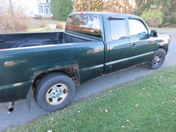 Bedliner, tow hooks, four brand new tires, inspected and serviced (Sept. 5, 2025), extend cab, 4-door, tilt wheel, towing package, air conditioning, cruise control, AM FM radio and CD player, currently registered and driven, folding rear seat, new brakes and rotors, some rust, cloth seats, vinyl flooring