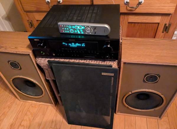If you're on a budget and need something, that sounds very nice for peanuts, You've come to the right place, Powerful Denon Multi-Zone Stereo Receiver which can run many more speakers at a time If you choose to go that route, but it sounds excellent in Stereo to channel with these vintage Pioneer 2-way Speaker Pair 10" Woofers, a CD player a subwoofer can also be adapted into this. can plug your phone into it, Hook it up to your TV, etc etc, in perfect working order in overall excellent condition, to the first $180, will gladly demo..