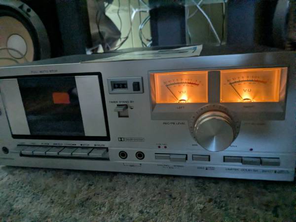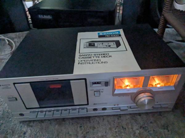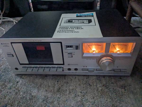 Sanyo Vintage SilverFace Cassette Deck, it lights up and has some awesome Large VU Meters, It does spin rewind fast forward and play. just wouldn't chance putting a cassette in there until it's been gone through, selling cheap because it probably needs to be gone through before use, was from a single owner smoke free home very clean, give it a good internal DeoxIT and a new belt and be a great unit for someone .