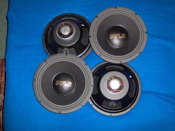 4 Pyle Driver 12 Inch Speakers New in Box---Will not Separate Will hold over 200 Watts A Pair 8 Ohm Speakers are Subwoofers Model # SW1217/8 Have 3 boxes of 4 Not looking to Separate or Trade Price...