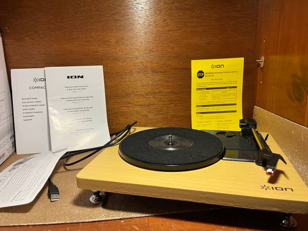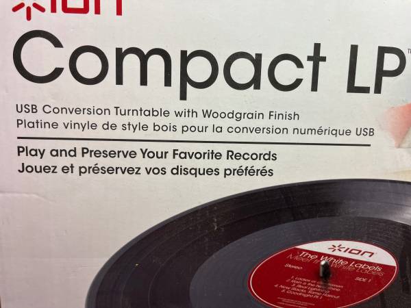 ION Compact LP USB Conversion Turntable with woodgrain finish