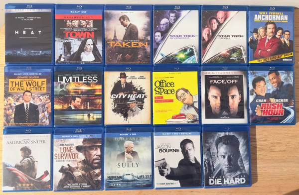 Asking $25 for the 17 Blu Rays pictured. I also have 15 DVDs I will throw in for free if the buyer wants them. The BDs are mostly unplayed, some played once. Most of the DVDs were played more than once but they shouldn't have any problems. Pickup in Fairport. Venmo accepted.