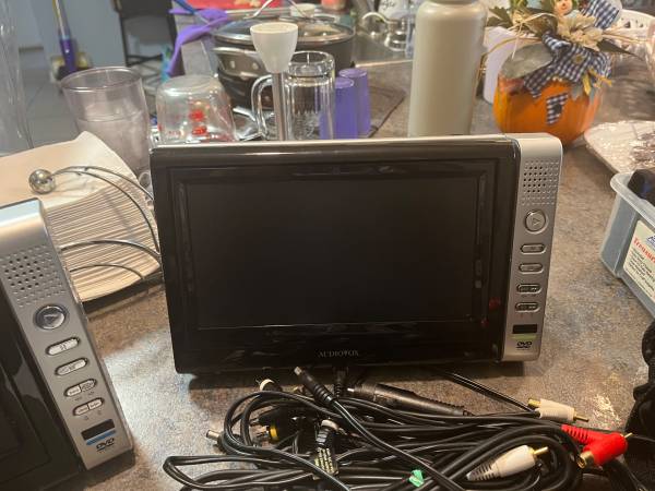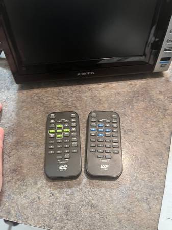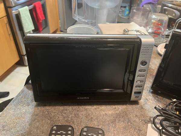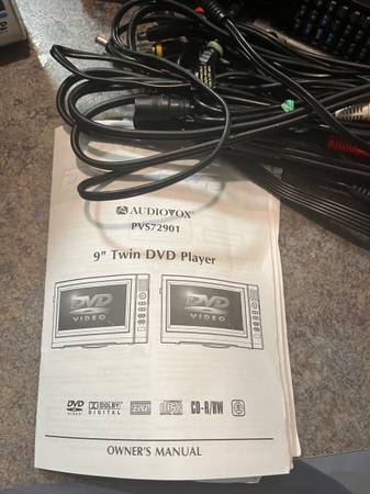 Hardly used dvd players by Audiovox. Mounts on head rest or free standing. 9” screens with remote for each one. These dvd players were used seldom for travel.