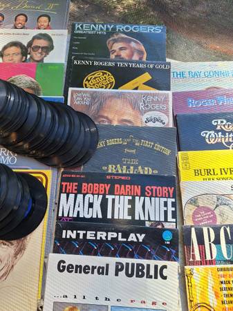 Country, Disney and kids records, And MORE, sleeves corners and edges as usual have wear and tear on them look at the pics but the records themselves look good.