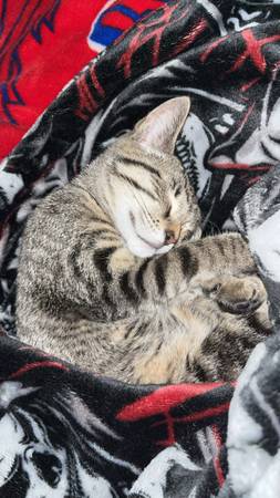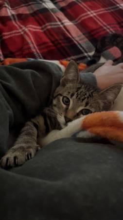 3 1/2 month old female kitten, my mom got me her as a surprise, I’ve been itchy and sneezing since I’ve had her and I went to the doctors and I’m allergic to cats.