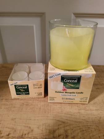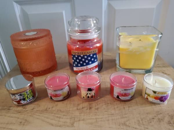 4 - 12.5 - 14.5 oz Jar Candles $5 each 4 - 1.6oz Jar candles $1 each 1 - box of 8 tea lights outdoor mosquito candle $5