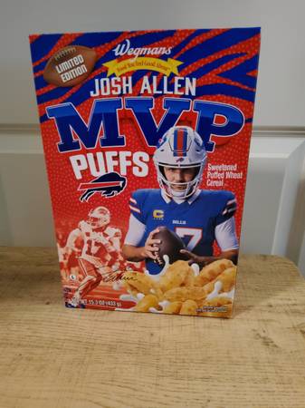 Josh Allen MVP Puffs Sweetened Puffed Wheat Cereal Wegmans Limited Edition Includes 1 reusable bag Will ship for additional cost of postage