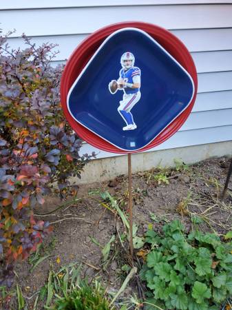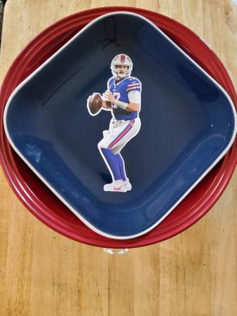 $25 - 9" navy plate, 7.5" red plate, 6.5" white plate, bottle and Buffalo decal