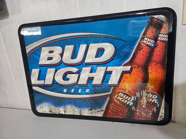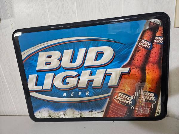 Bud Light Beer Picture with Clock. 21 3/4" wide, 15 1/2" high. Call . Land Line / No Texting (five, eight, five, three, nine, two, five, eight, six, five).