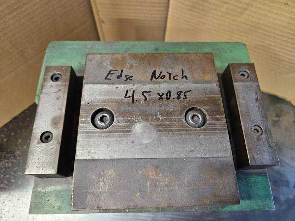 Unipunch edge notcher 4.5 x .85-in edge notch dieset functional, well-greased Rough outer Dimensions of unit with dieset 12 inches long at base 9.25 inches tall 5.75 inches at wide bottom, 7.25...