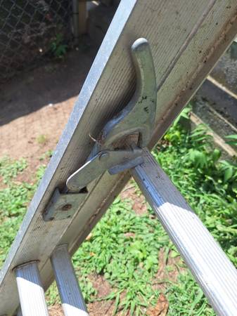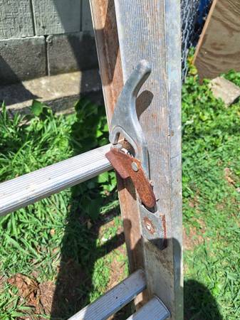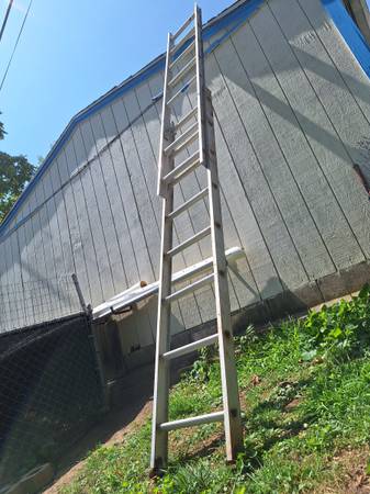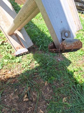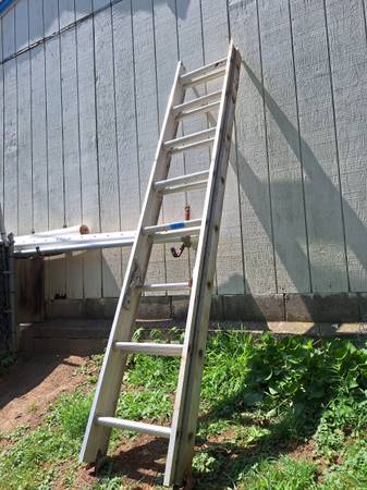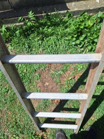 aluminum extension ladder has the feet on the bottom it has some paint over spray and stain on it but the ladder works great nothing's bent or damaged, nice lightweight ladder.