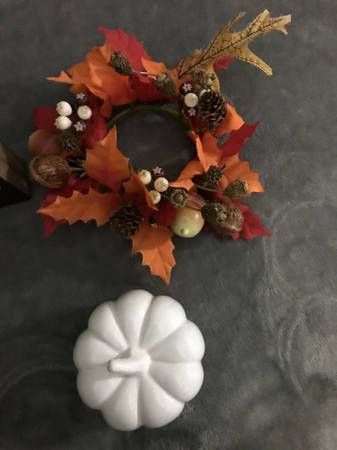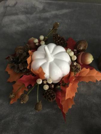 Comes with 2 centerplace rings and 2 white ceramic pumpkins