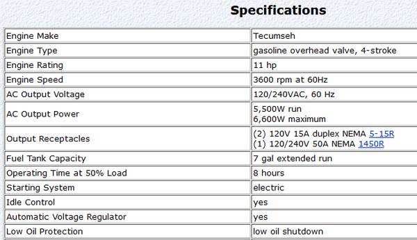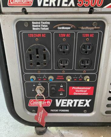 Coleman Vertex Powermate 5500 watt Generator. 11 hp, low hours, 6,000 peak. 110 and 220 volt. See photo for specs. Phone is landline - no texts