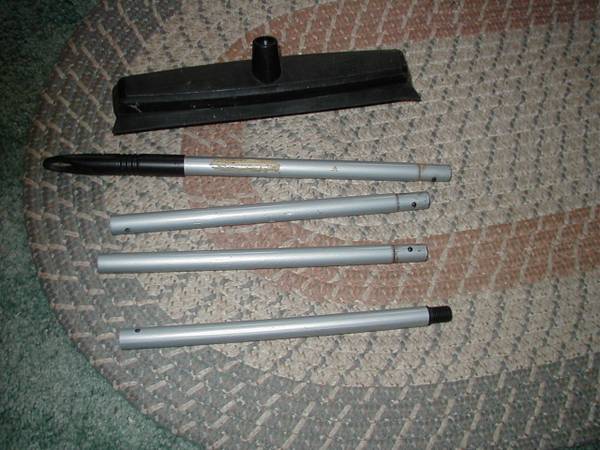 Combo Rubber Broom and Squeegee. Easy to put together handle making it about 5' long. Call Dave