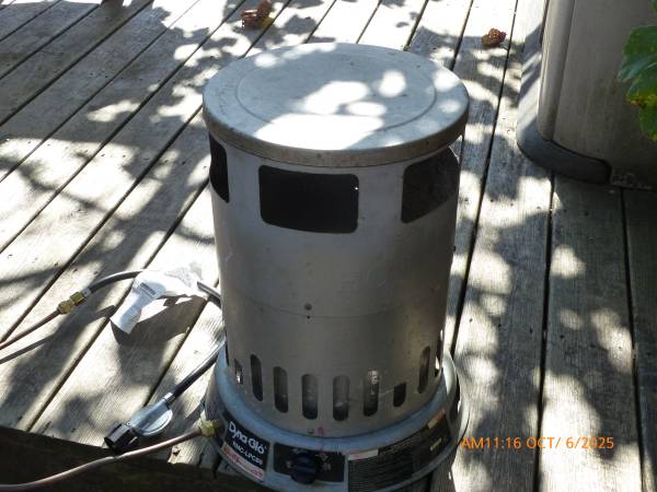 Up for sale is a excellent working, self igniting propane heater. Adjustable from 50K btu to 80K btu. Perfect for your unheated garage. $40 Will remove when sold.
