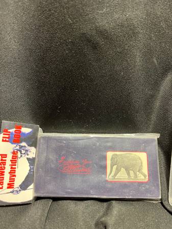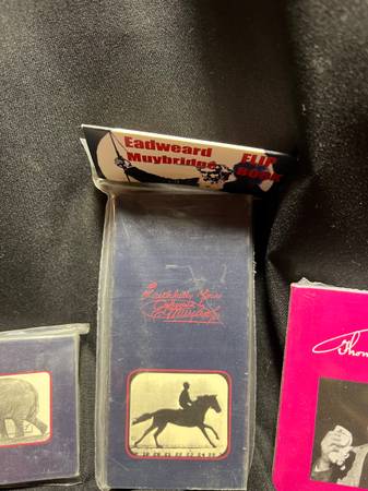 The product is a set of five Eadweard Muybridge flipbooks featuring different animal subjects such as a horse, elephant, and kinetoscopic record of a sneeze