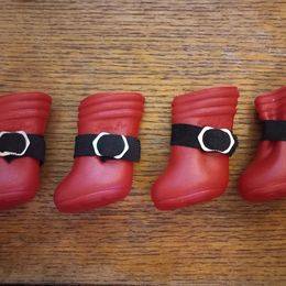 Four Paws Red Rubber Dog Boots Rain Snow waterproof outdoor Shoes Set - $5. Sz Small