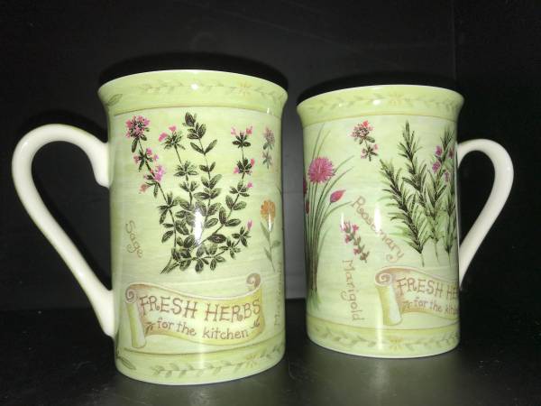 2 Fresh Herbs Mugs by Northamptonshire England - general for sale -...