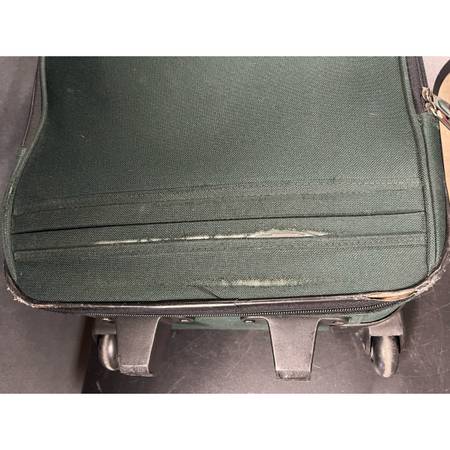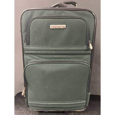 Green Modena carry on suitcase. Travel luggage. Scuffed up on outside